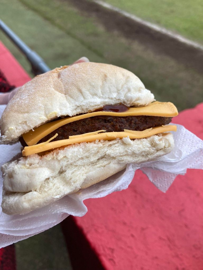 We weren’t really very hungry at today’s game so decided just to share a cheeseburger between us. In the end it was a good job as the burger was really overdone and crispy. I’m sure it was just us being unlucky and they are usually a lot better but it was really disappointing and we ended up only eating half of it between us!