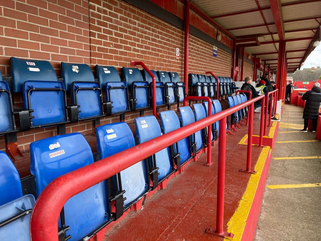 One thing you notice about this stadium is there are seats everywhere! Over 1,500 of them and with the crowd at today’s game being 650 alot of these were empty. In my opinion the seats behind the home end goal aren’t really needed and this end would be much better as a standing terrace. Overall though this is the type of ground we love! Unique and full of character. Unfortunately for Alfreton though we need to compare the ground to others in the league they are currently in, and that is why I don’t think we can score it any higher that a 6.