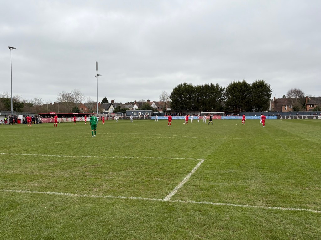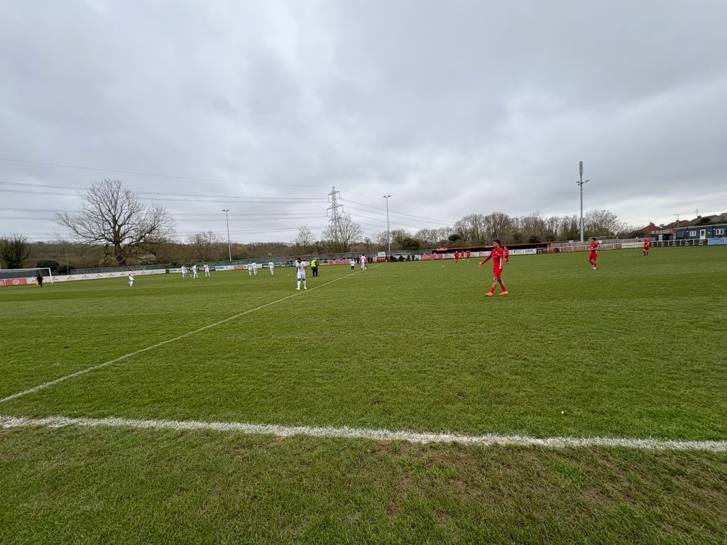 I arrived at the ground around an hour before kick off and headed straight to the clubhouse to get some pre match food. If you want chips, Anstey is not the place for you as they aren’t on offer here, but a decent variety is on offer including massive pizzas which looked great. I went for a cheeseburger though which was reasonably priced at £4.50. I had to wait around 15 minutes while this was cooked but when it arrived it certainly looked worth the wait. One of the thickest burgers I’ve had at football but unfortunately it didn’t quite live up to it’s looks as it was slightly lacking in flavour. That being said I’ve certainly had allot worse at non league and I would happily have it again.
