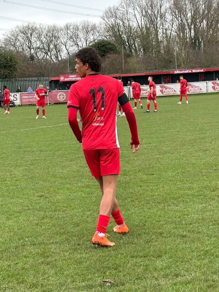 Anstey’s kit this season is all red with a black collar and white detail down the side of the shirt. The kit is pretty basic and the black numbers on a red background aren’t the easiest to see from a distance.