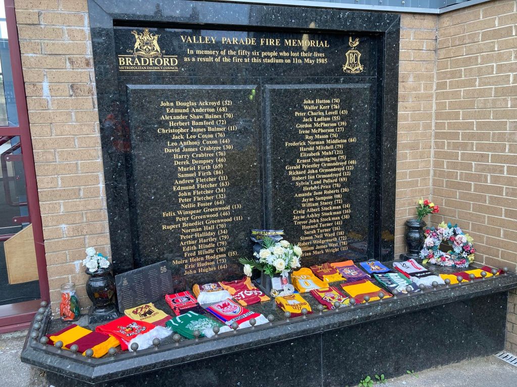 Valley Parade was home to one of the biggest tragedies in British football as on the 11th May 1985 the main stand set on fire. On a day which should have been a celebration of the clubs promotion back to the second tier it will instead be remembered for the fire which caused the tragic death of 56 football fans including 2 from that days opponents Lincoln City. After today’s game we paid a visit to the memorial at the ground. It was a sombre experience and especially emotional seeing the Fletcher family, as it seems 3 generations of the family were killed in the fire, with the youngest being only 11 years old.