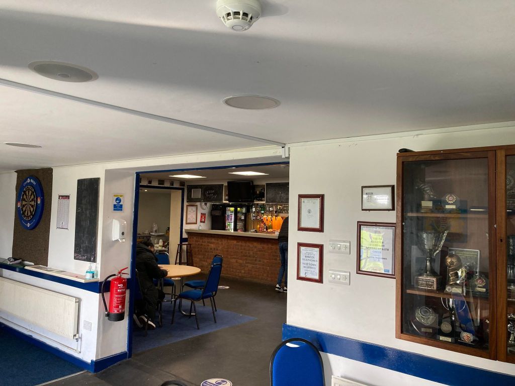 The clubhouse at Bristol Telephones is a large, striking blue building which is shared between all the football and rugby clubs that use the facilities on the edge of the village. Due to this the bar is actually outside the ground itself and you have to leave the ground again through the turnstiles to get to the bar