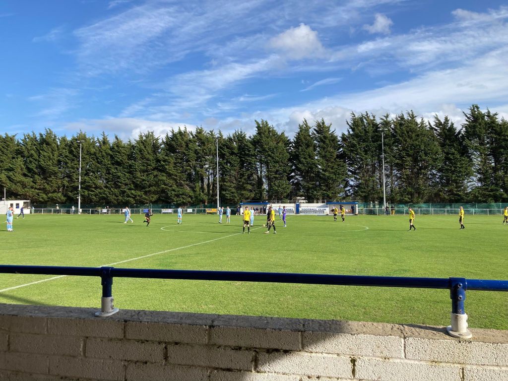 The game started evenly with the hosts getting the first real chance with a few early corners, but they were all dealt with maturely by the cheddar defence. Both teams were struggling for any real quality and that was meaning chances were put on hold. That was until the 25th minute when a good cross from a mobile Telephone’s winger was met by a good connection, but the header from the forward clattered into the post!