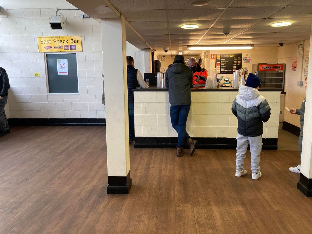 The away terrace at the Pirelli Stadium contains a small inside bar under the stand. It is about as basic as you could possibly get with no decoration at all, but we were surprised by the fact there was an indoor bar under such a small stand. Outside there was a small hatch serving food and drink aswell as plenty of space to mingle before the match and at half time.