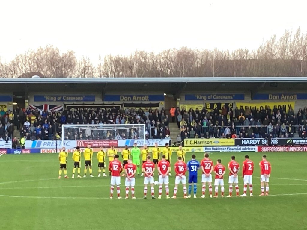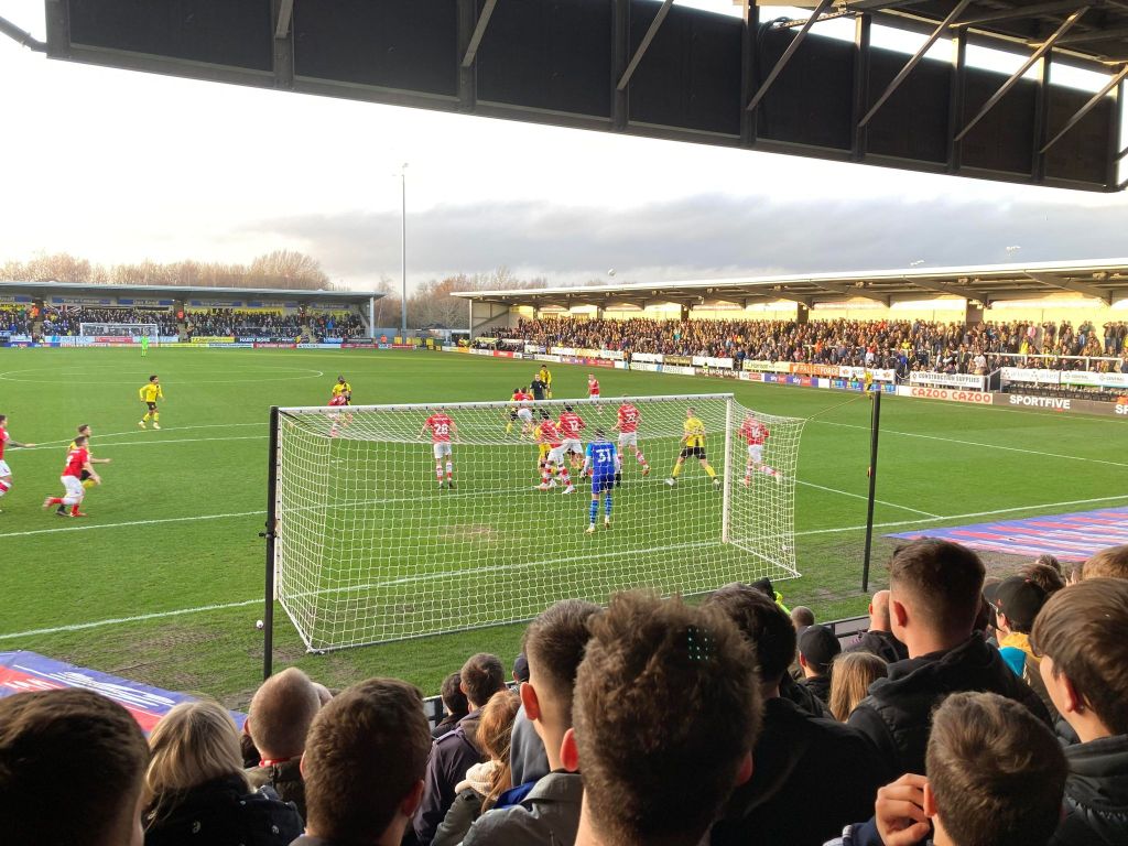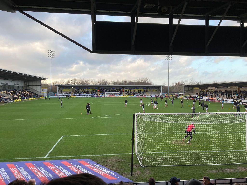 The Pirelli Stadium is a smart, modern little ground holding just under 7,000 fans. All 4 stands are a similar size with only the main stand containing seats. The other 3 stands, including the away stand are standing only with good steep terracing allowing a decent view to be had from any level. All 3 of us enjoyed the fact the away end was a standing terrace which you don’t see enough of at football league level.