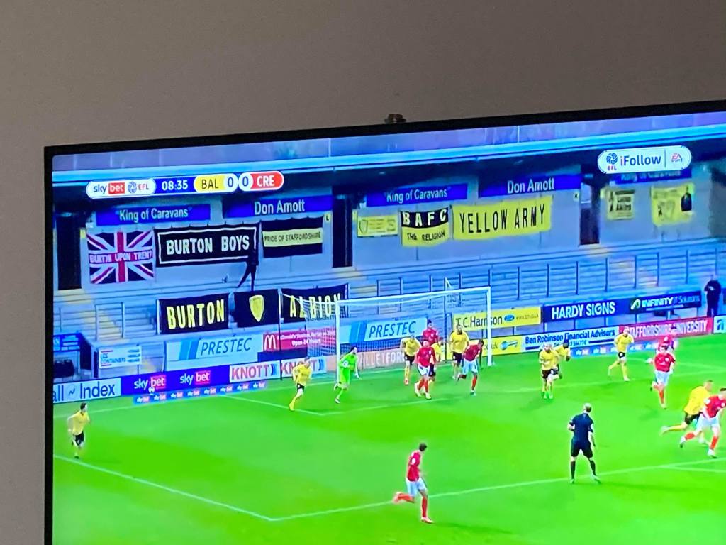 With the monthlong national lockdown over, we were looking forward to being back at the football again. Sadly though, the guidelines for viewing non league football had changed meaning all football in tier 3 areas must be played behind closed doors. We had hoped to get to a local step 7 game, but the weather was not on our side either with games getting postponed left right and centre. In the end we decided to stay in the warmth of our flat and fork out a tenner for iFollow to watch my team Crewe away at Burton.