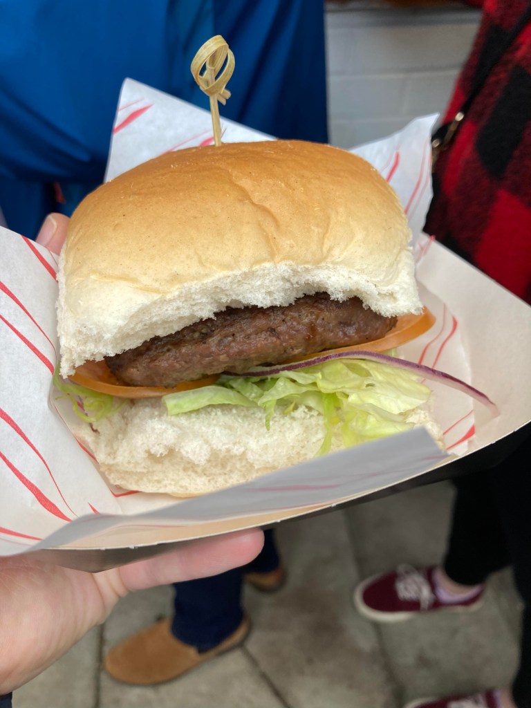 It was nice to get some fresh salad and pickles in the burger and there was a good selection of sauces available to add to the burger. The patty itself was thick and juicy. Compared to other food at football league grounds it was very nice, but definitely not worth the price.