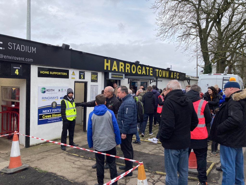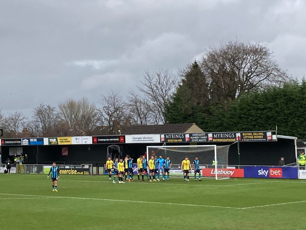 Behind one goal is the home terrace which was filled with the more noisy Harrogate fans.