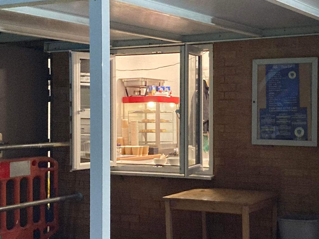 The decor inside was a little dated but the room was more than big enough for the crowd at today’s game with plenty of seats and tables available. The food is served from a hatch on the outside of the building.