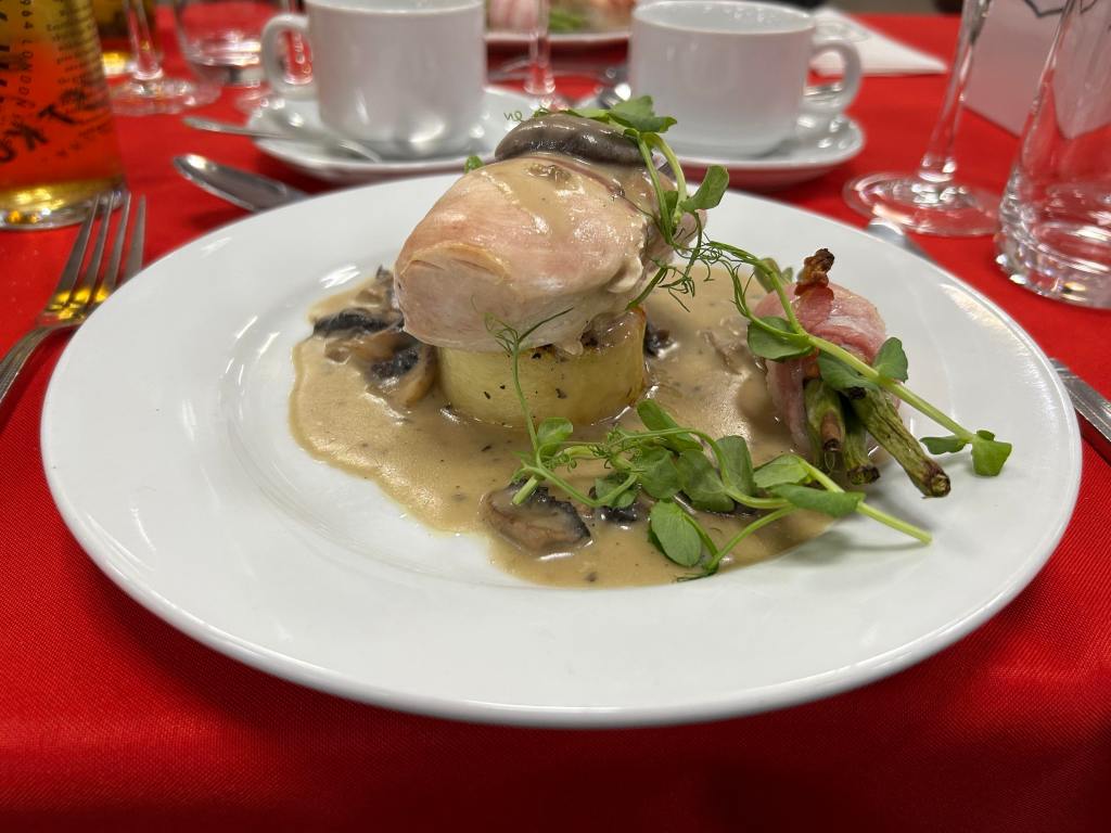For main course we all went for the chicken breast which was served with a fondant potato, green beans wrapped in bacon and all coated in a creamy mushroom sauce. This was definitely the highlight of the meal and we all really enjoyed it.