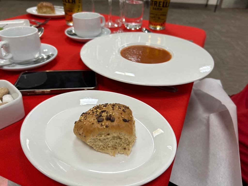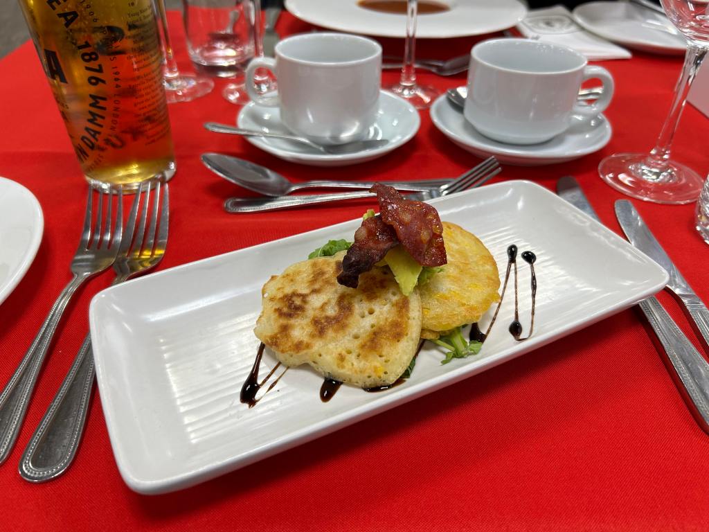 The 2 of us, alongside my Dad and Grandad turned up to the Mornflake Stadium at 12:30 and were escorted to our table in the Wrights Lounge within the main stand. There we were handed our welcome drink of prosecco while we perused the menu.