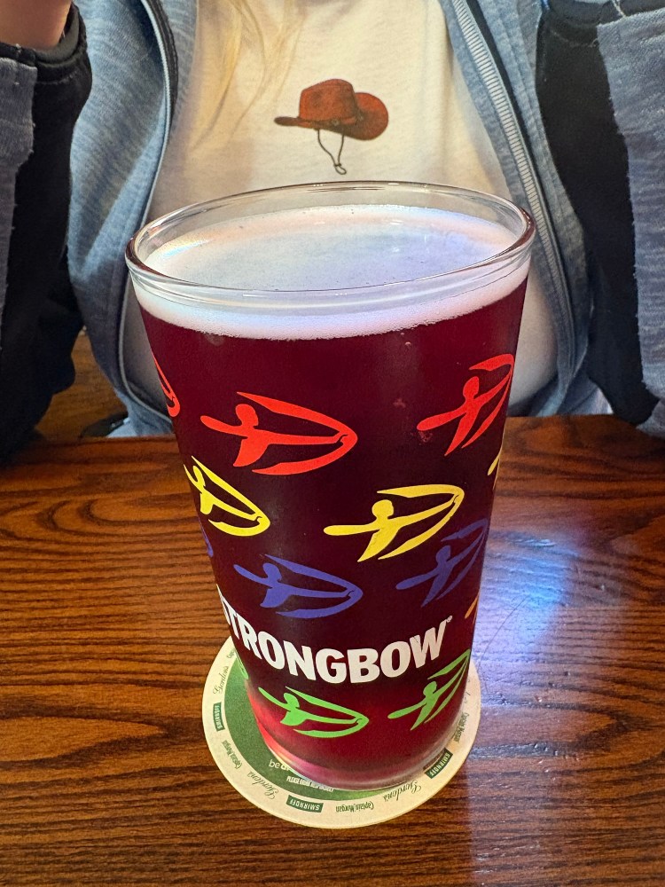 Drinks wise, there was a decent choice on draught, including the unique club branded ‘Yellow Bob’ golden ale which was great to see. Unfortunately no dark fruits in the ground though so no bonus point for the RM! Luckily before the game Emma managed to get her hands on a pint of Strongbow’s finest in the Red Lion in Hucknall town centre!