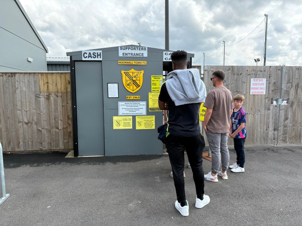 Hucknalls new ground is located just across the road from the old one. It is around a 30 minute walk from the train station and tram stop, with a couple of pubs en route. There is a car park in front the ground which filled up quickly but there is also an overflow round the back of the ground so there’s plenty of space if you are heading to the ground by car