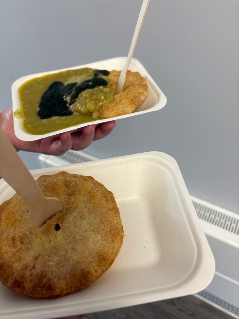 A limited selection of pies were available alongside a variety of crisps and chocolate. Emma chose the chicken whilst I went for the mince beef and onion with mushy peas. At just £3 each these were great value and although not the most exciting or varied choice these filled a gap nicely.