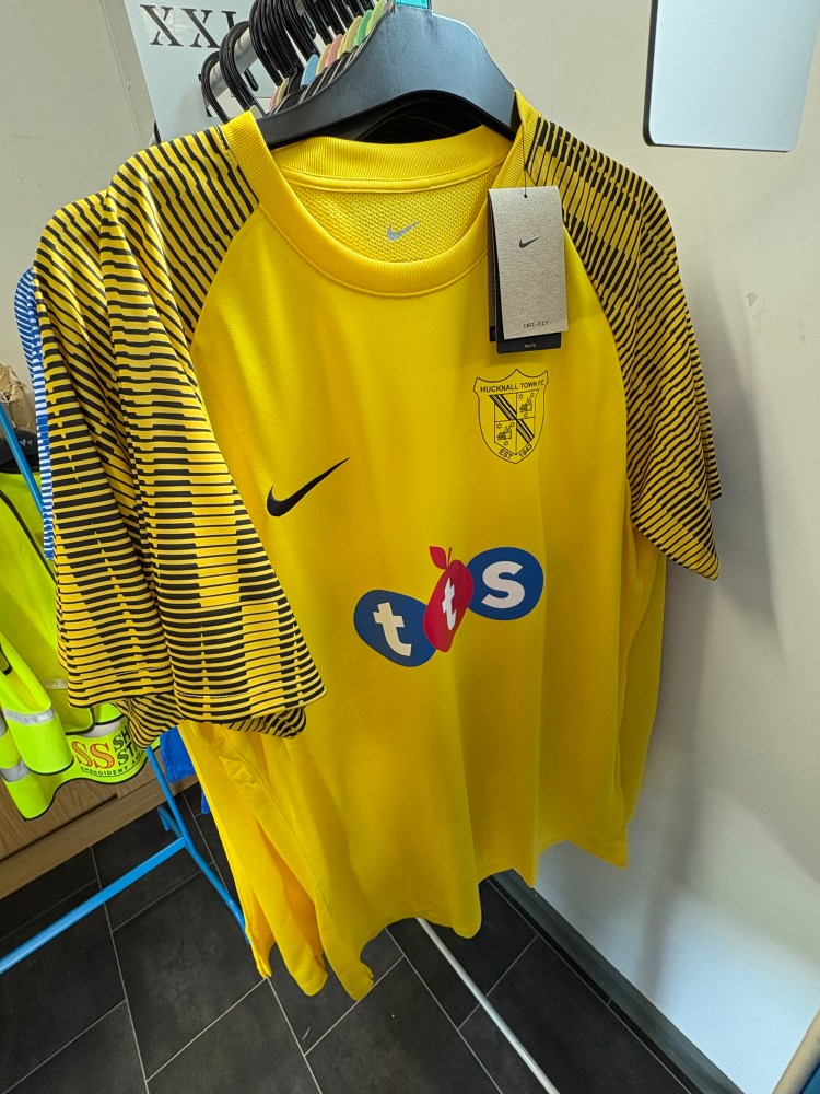 Hucknall’s kit is a distinctive bright yellow shirt with yellow socks and black shorts. This season’s shirt is a nike design with a black pattern on the sleeves. A simple but smart design which many of the fans in the ground obviously liked with a lot of the crowd wearing replica shirts.