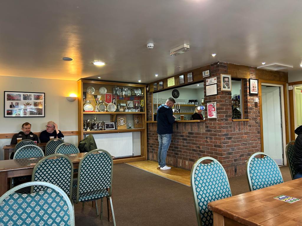The clubhouse had plenty of seating and a large TV showing the football. With a dartboard in the corner too there is plenty to keep supporters occupied before and after the game. We both liked the brick built bar which was was well stocked, with friendly faces ready to serve you.
