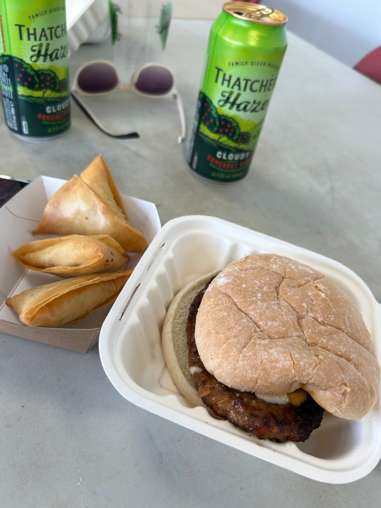 As we walked into the clubhouse pre match it smelt like teen spirit. It turns out it was just burgers though as a limited menu of burgers, chips and samosas were on offer from behind the counter.