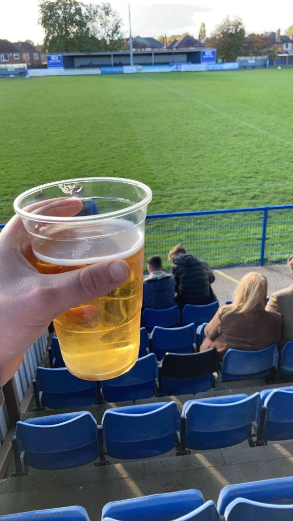 The bar, toilets and catering at Grange Park are all housed in a smart looking building behind the main stand. The bar itself is a good size and had big screens showing the early kick off on Sky Sports. The bar was smartly decorated and we all commented on how this sort of set up is something Newark can only dream of when they hopefully move back to the Town when a new site is found. There was a decent crowd in for today’s game and the barman worked efficiently meaning queues were short and everyone got served quickly.