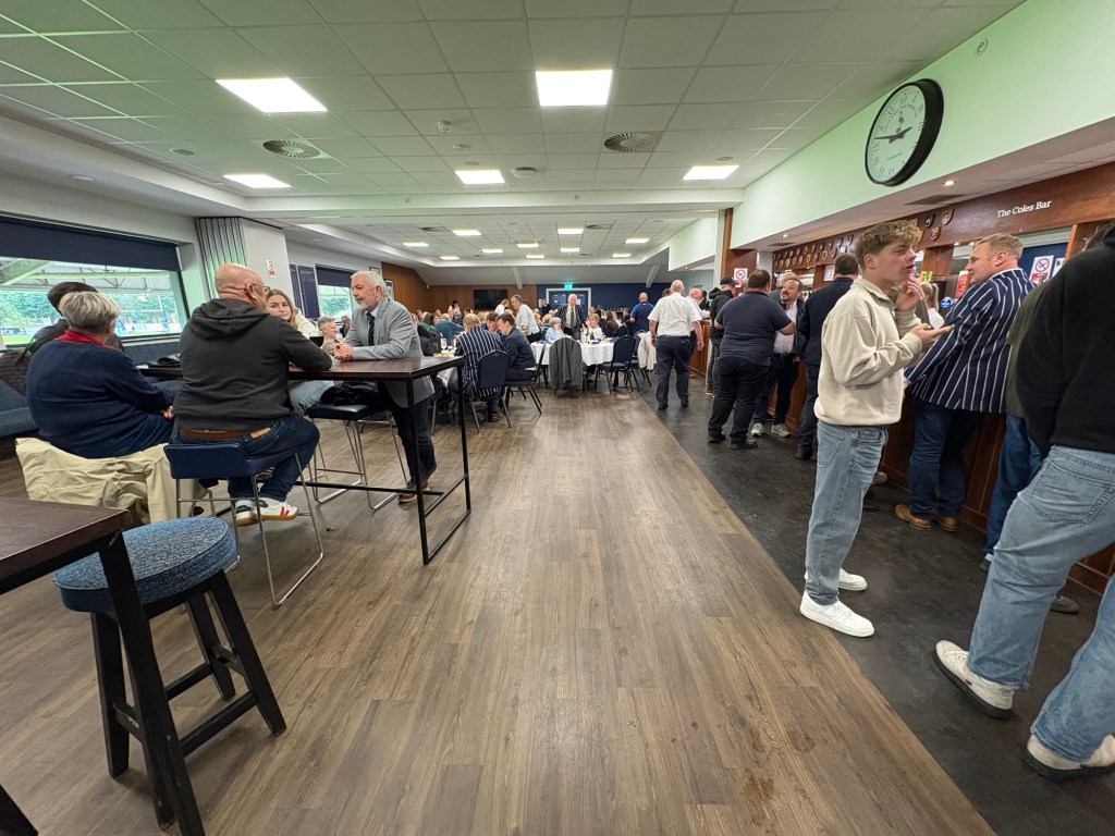 Once inside you turn immediately left and enter into the huge main bar. This is filled with high tables on one side and large round tables in the other which were filled with club officials and supporters enjoying some pre match hospitality. Many of these club officials were incredibly smartly dressed in pinstriped blazers and shirts and ties which is very different to your local non league football club!