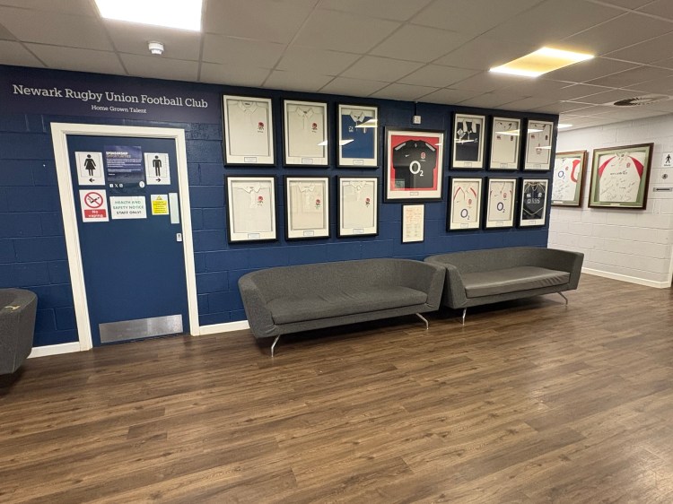 Once up the steps and into the clubhouse you are greeted with a smart reception area with 2 sofas and walls filled with signed rugby memorabilia. The wall is painted smartly in the clubs dark blue colour.