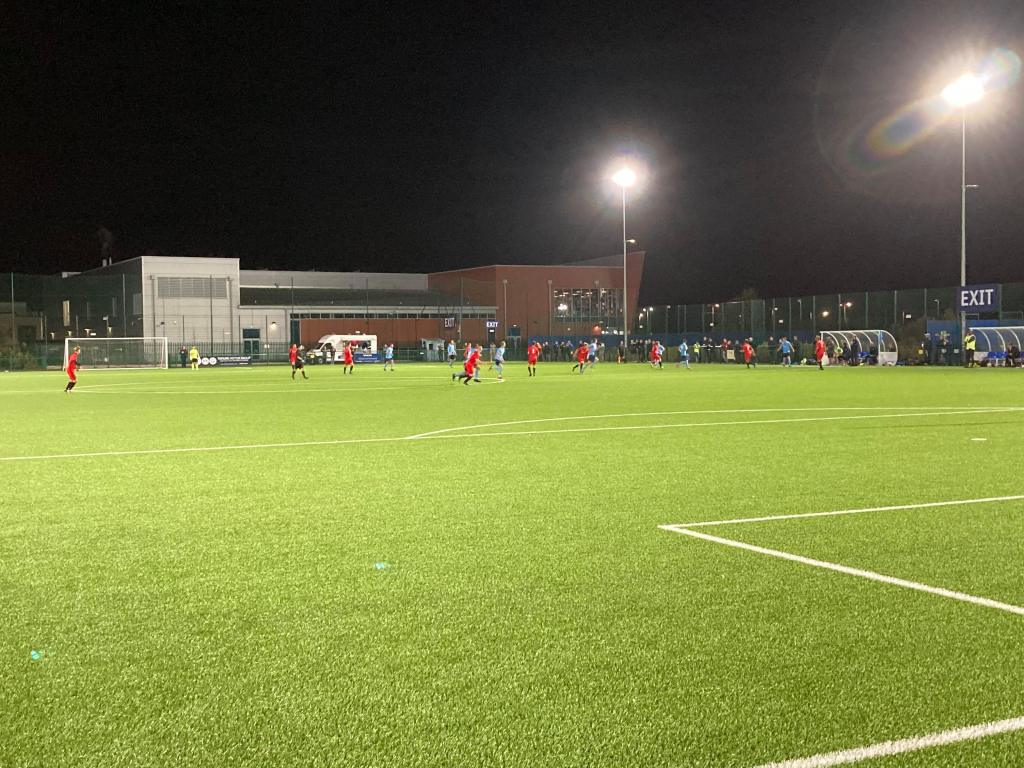 The ground itself is incredibly clean and shiny as you would expect from a brand new facility. The 4G pitch looked beautiful under the lights, and talking of the lights, I’ve never seen any so bright! The ground only has one ‘stand’ if you can call it that, which is a tiny covered area on the halfway line. Sadly, the only way you could tell this is the home of Newark Town was a small laminated sign on the way in. Obviously Newark have only been playing here for just over a year so there’s plenty of time for improvements to be made and if they do get promotion they will have to add a seated stand to pass ground grading. Therefore hopefully in a couple of years the place will seem more like ‘home’ and less like they are just renting a local astroturf pitch.