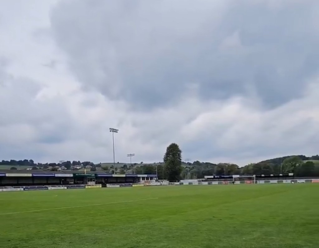 We arrived at the ground just after 1pm where we were greeted at the gate and told to make our way to the clubhouse. After a lap of the ground and a few photos taken of the views behind the goal (more on them later!) we made our way into the bar.