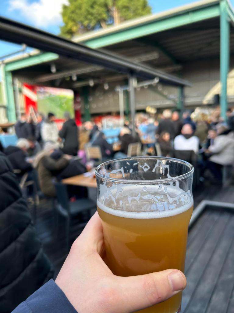The food and drink options were pretty standard for what we have come to expect from football league grounds. Pukka Pies or pre cooked burgers. I went for a Chicken balti pie while my dad opted for steak. It had been a while since I’d had a pukka pie at the football, and maybe it was just down to the fact I was 4 pints in and hadn’t eaten yet, but I actually really enjoyed my pie!