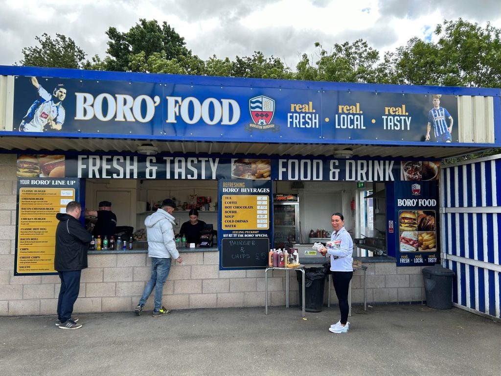 The food was served from a large hatch right behind the turnstile as soon as you enter the ground. There was plenty of space to queue and once again the service was quick and efficient. We did see a second food hatch on our walk around the ground but on this gameday it wasn’t open.