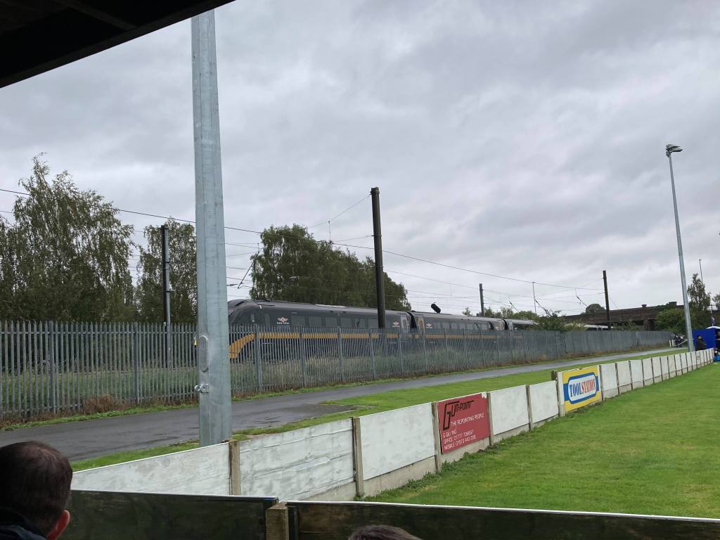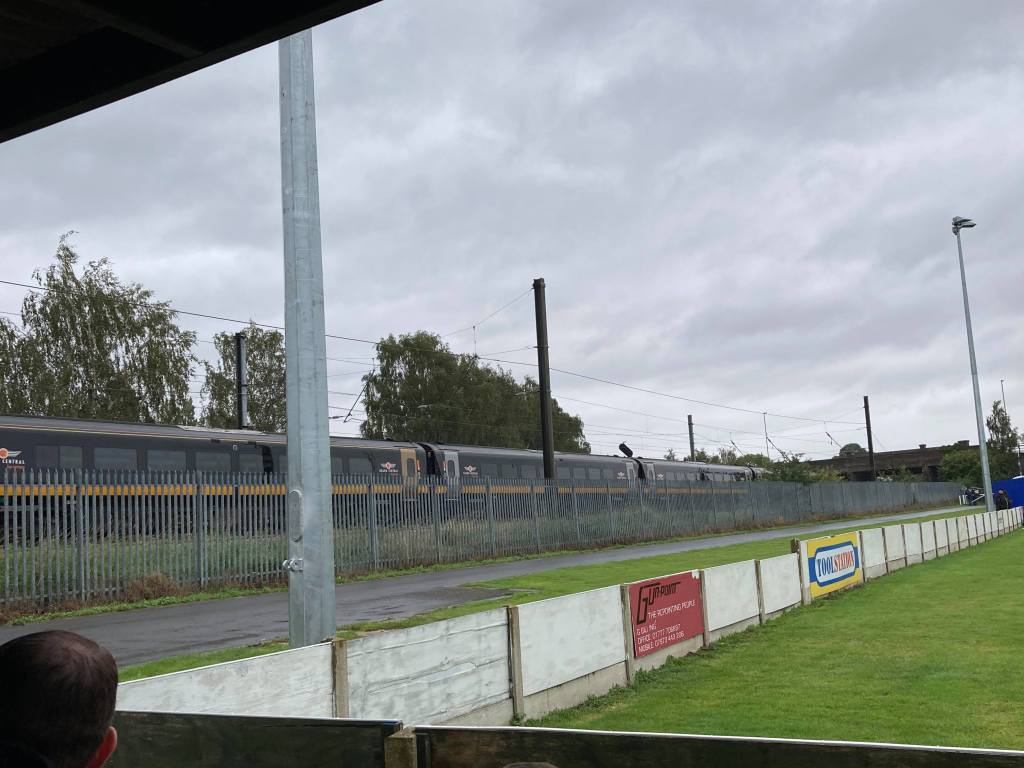The ground itself has 2 very unique features. The first, as mentioned above, the tunnel which leads under the main road to the ground. The second being where the ground gets its name. The East Coast Mainline runs right alongside the ground and makes for some fabulous photos during the match. Unfortunately due to the awful weather (it felt more like November than August bank holiday!) we didn’t dare leave the stand to get a better angle!