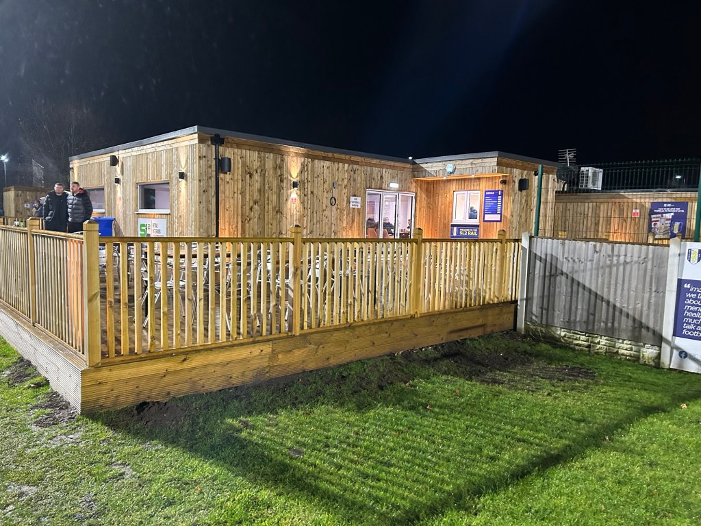 One major feature was, ahead of the 2024/25 season, the addition of a brand new state of the art clubhouse. This has been built with a very modern all wood design and contains a bar and seating inside with large screens showing sky sports. As well as this, the club have included a brilliant outside seating area behind the goal which is raised slightly above pitch level making for a fantastic view. We can’t wait to return to the ground for an early season game and make the most of this area with a few dark fruits!