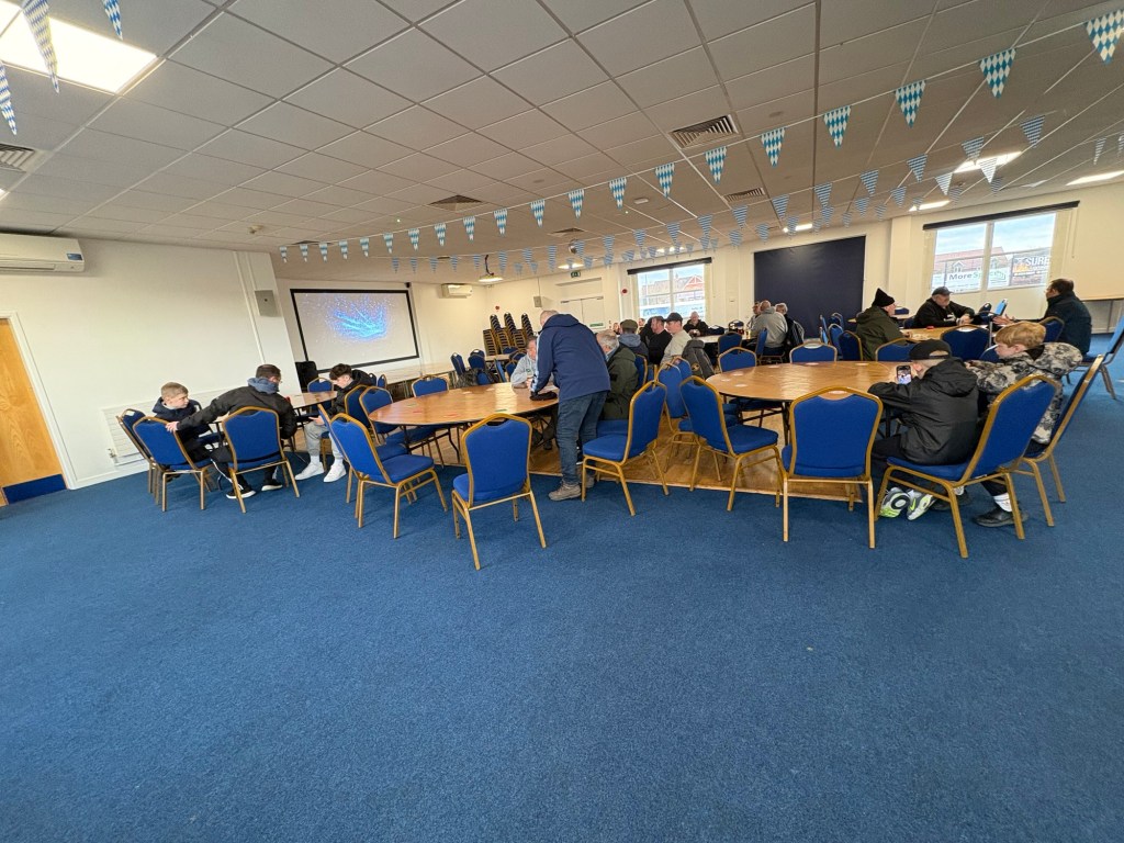 At the front of the room was a temporary stage area and there was a large dancefloor under the tables so we can imagine the club make a good amount of money renting this room out for parties away from matchdays. There was also a large projector screen on the wall showing the early kick off.