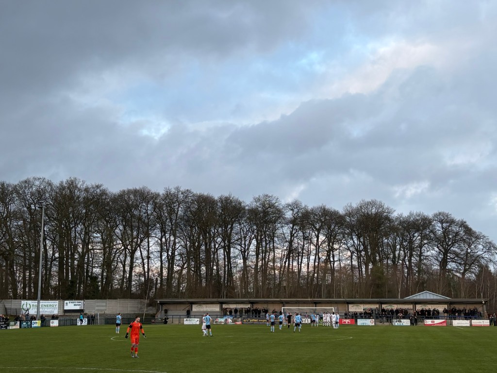The game started evenly with very few clear cut chances and both sides struggling on a heavy pitch after the recent poor weather. On the half hour mark some persistent play on the left hand side from Carlton winger Lamin Manneh saw him win the ball and cross it in to former York City frontman Ash Chambers who found space in the box with a beautiful turn and finished into the roof of the net.